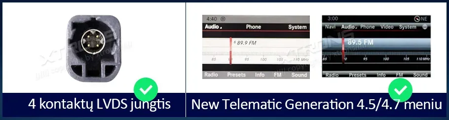 Multimedija visiškai suderinama su Mercedes-Benz COMAND APS NTG 4.5 / 4.7 sistema ir išlaiko visas originalias funkcijas: